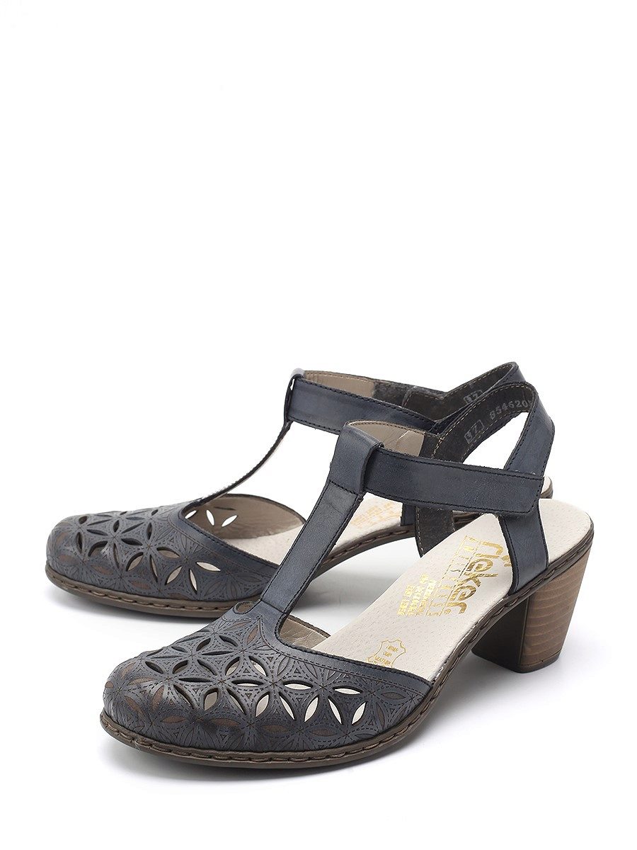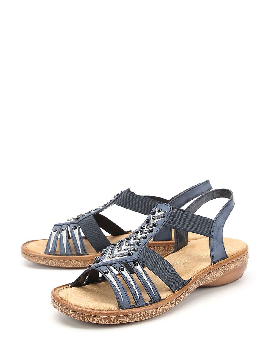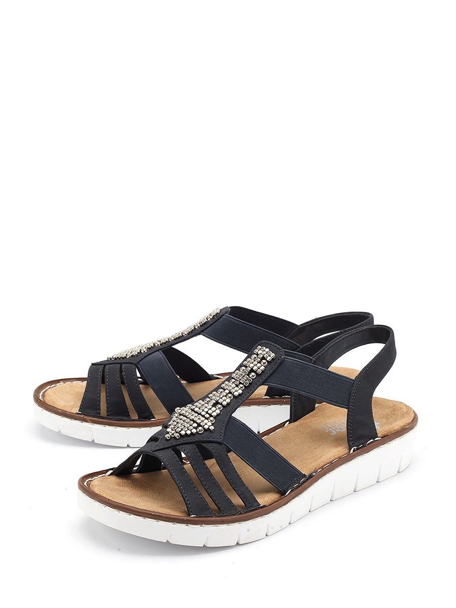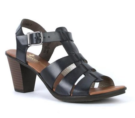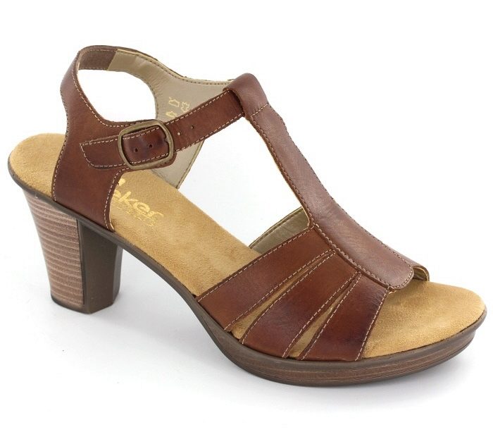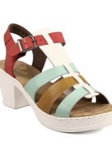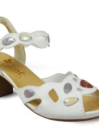 There are both open and closed models. As for the performance of the sole, it is possible to choose an option with a heel (necessarily stable), a platform or a low wedge. Also in the Rieker collections are sandals on a flat sole. A small number of models has a stud.