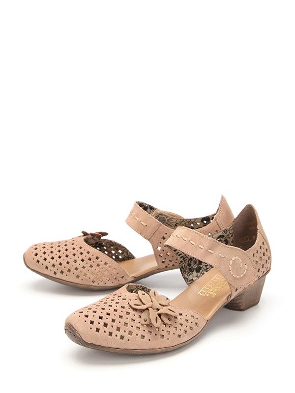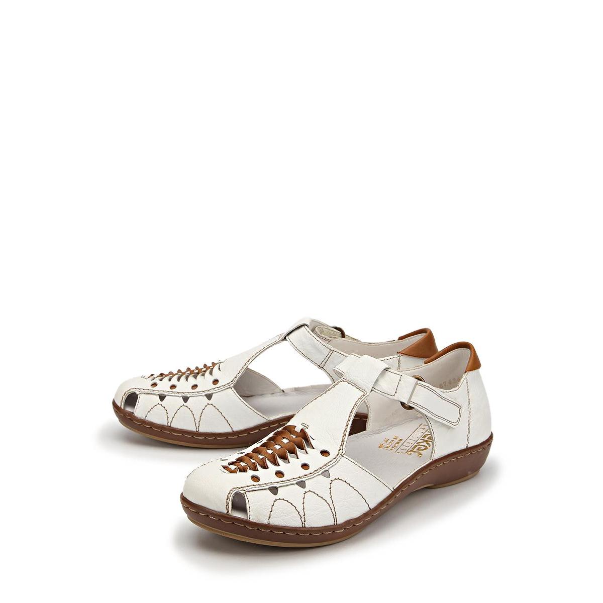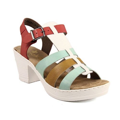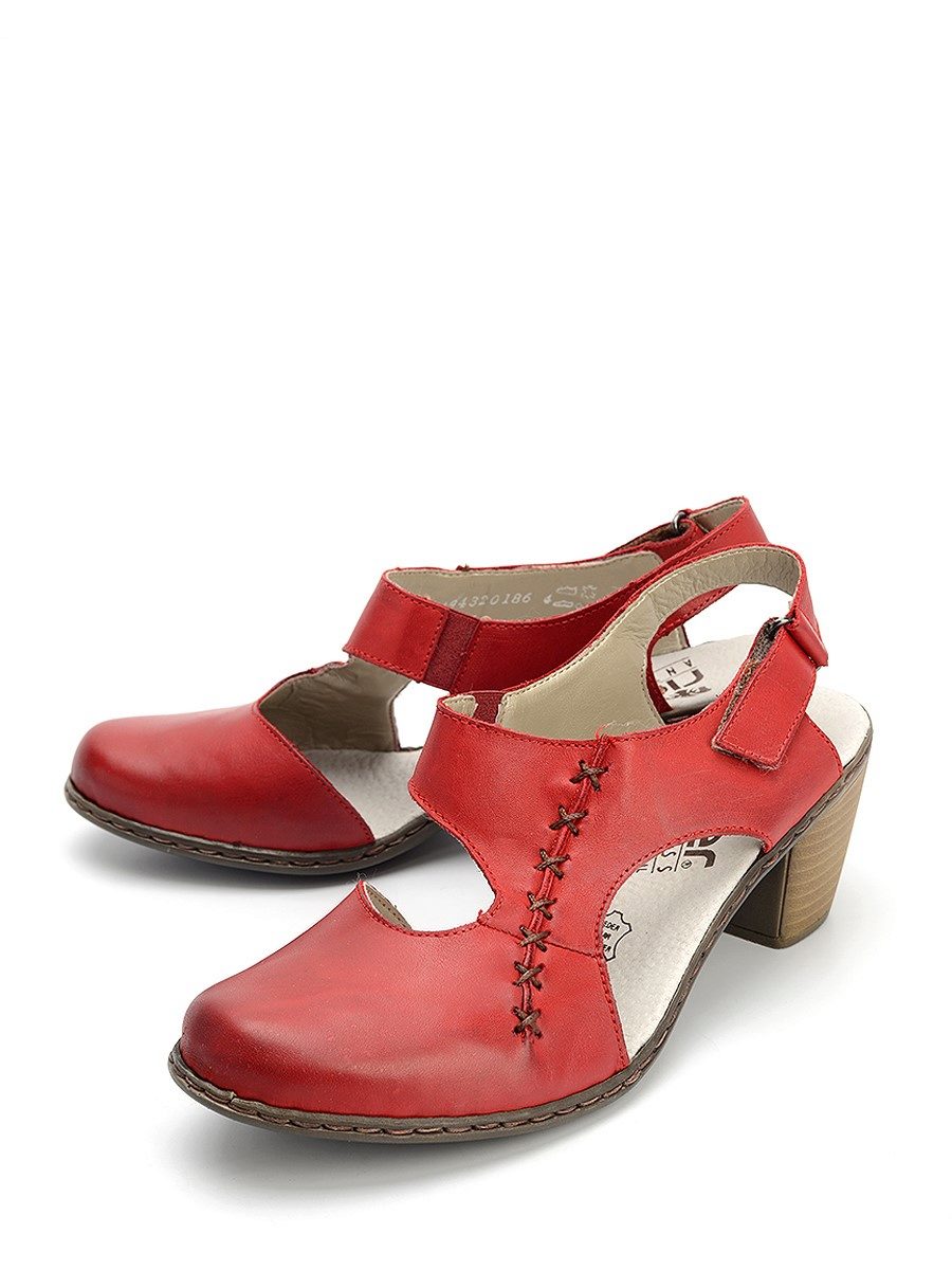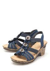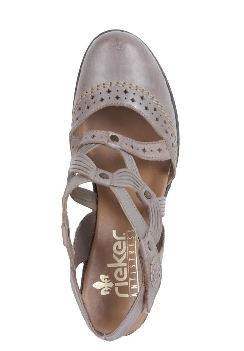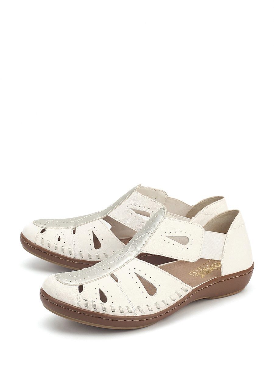 There are both open and closed models. As for the performance of the sole, it is possible to choose an option with a heel (necessarily stable), a platform or a low wedge. Also in the Rieker collections are sandals on a flat sole. A small number of models has a stud.