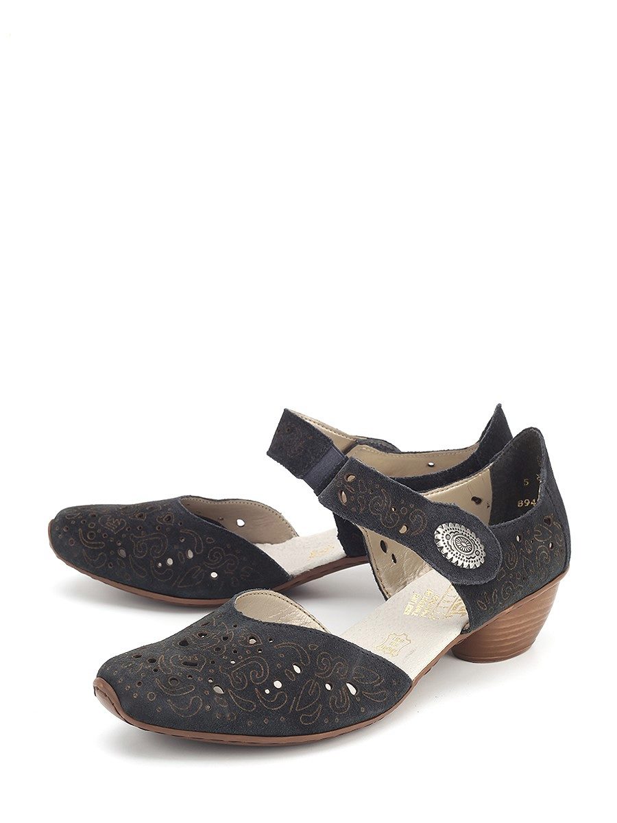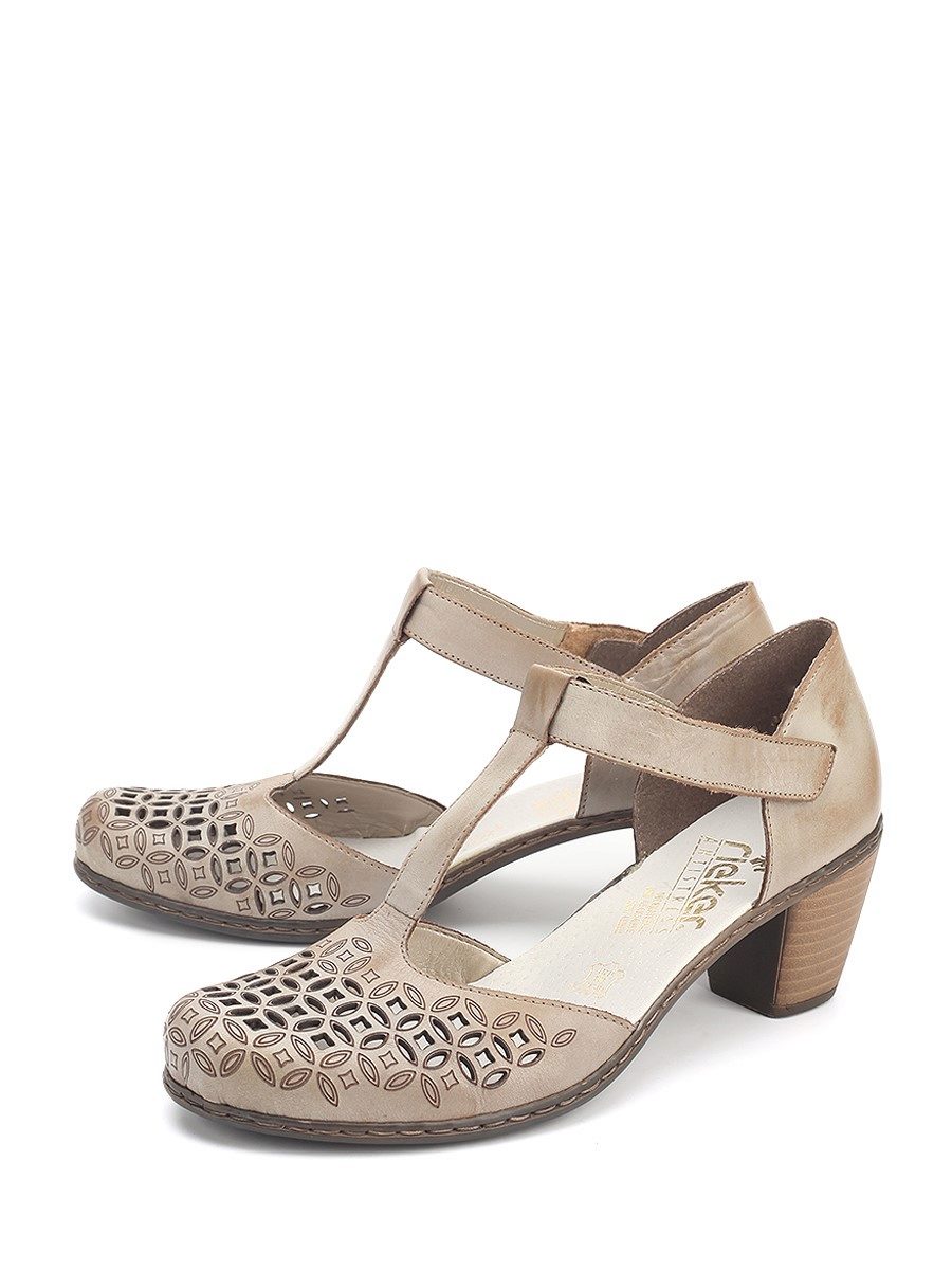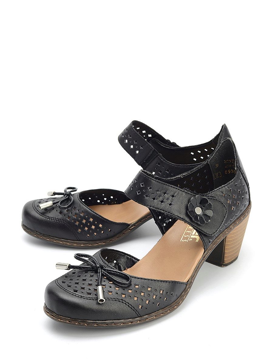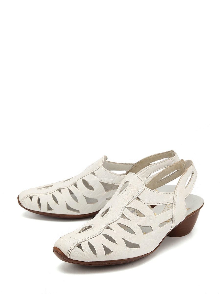 There are both open and closed models. As for the performance of the sole, it is possible to choose an option with a heel (necessarily stable), a platform or a low wedge. Also in the Rieker collections are sandals on a flat sole. A small number of models has a stud.