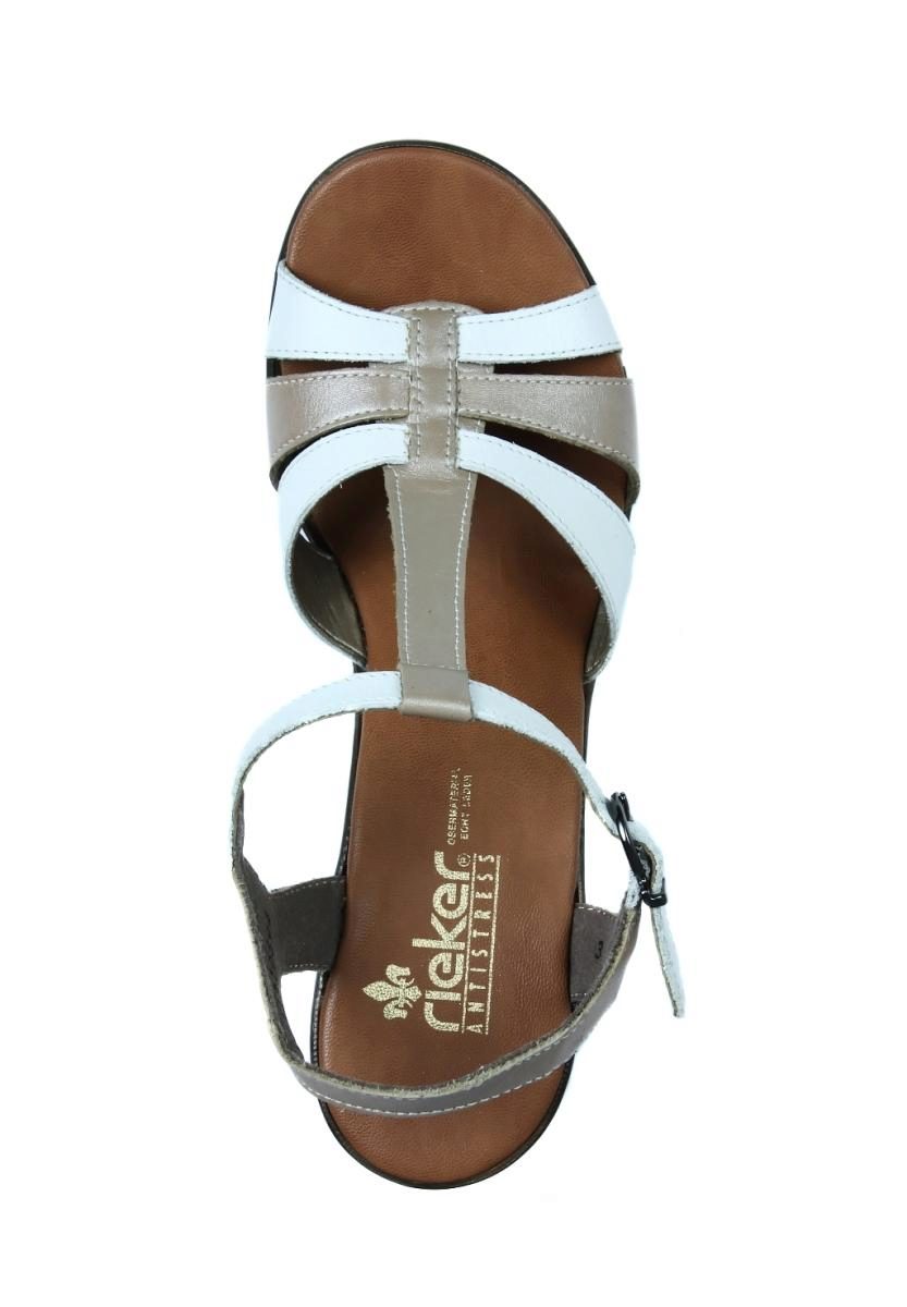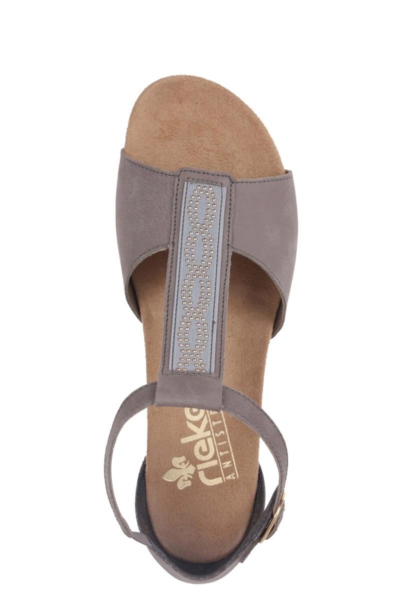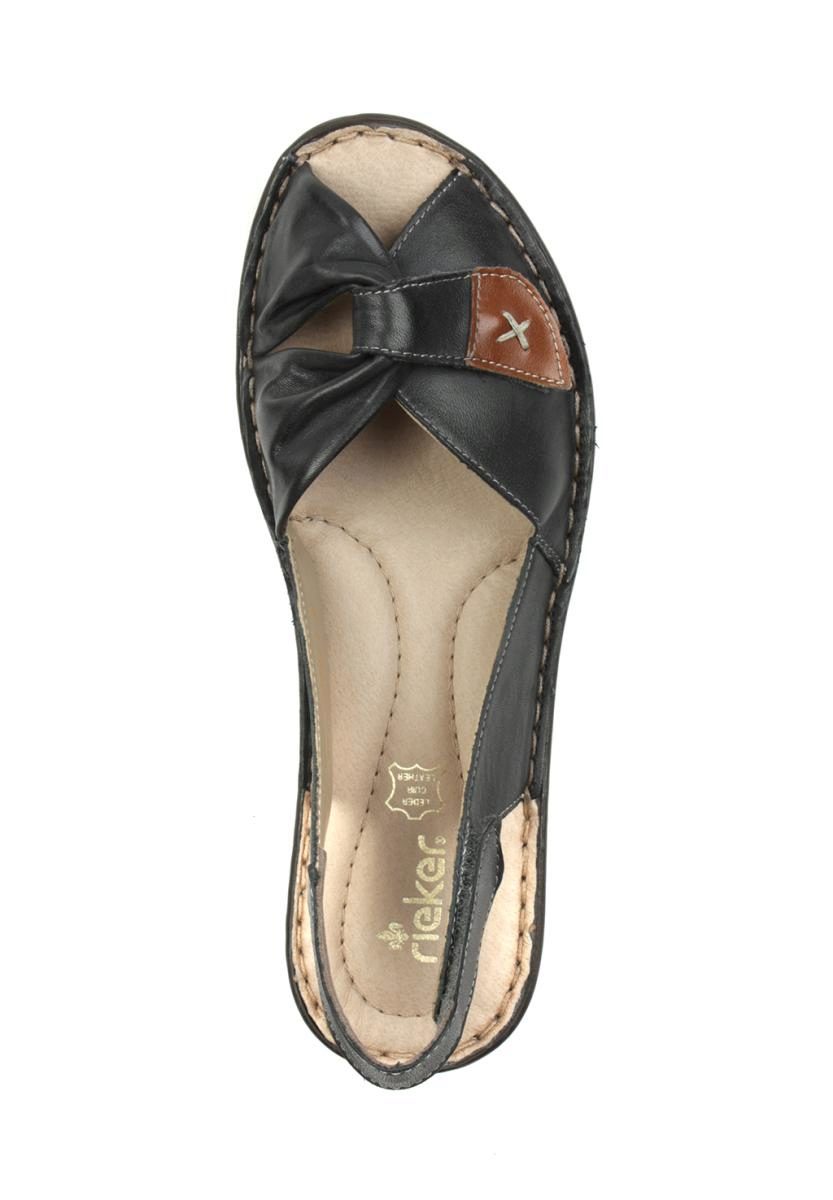 Rieker sandals have a comfortable shoe with a slightly widened bow. This is convenient because at the end of the day, women's legs often swell. For the same reason, Rieker products are purchased by ladies with a problem foot (bulging bones and high lift).