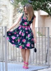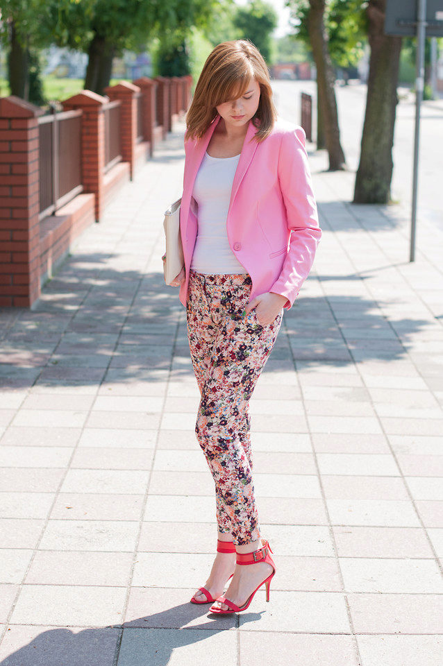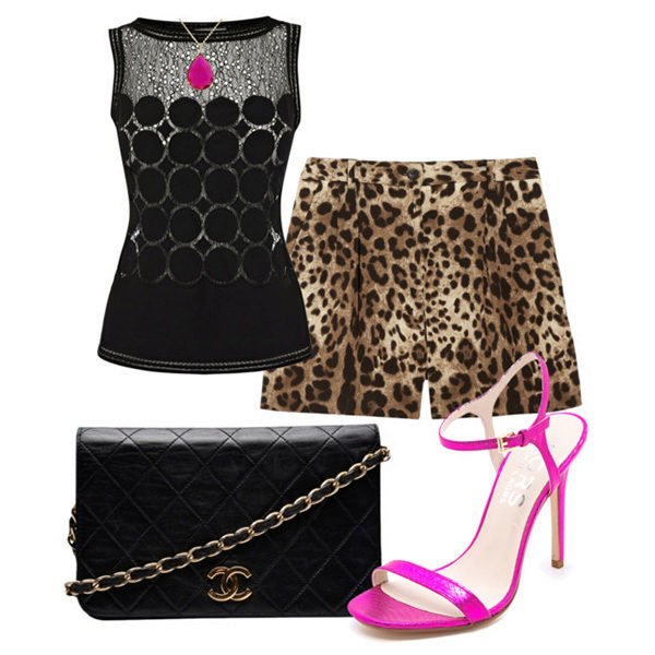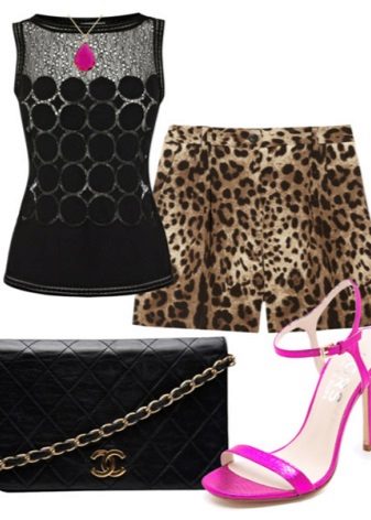 The successful duet will turn out with various flower prints. In addition, a spectacular image can be created by combining pink sandals with leopard outfit, the main thing here is not to overdo it with accessories.