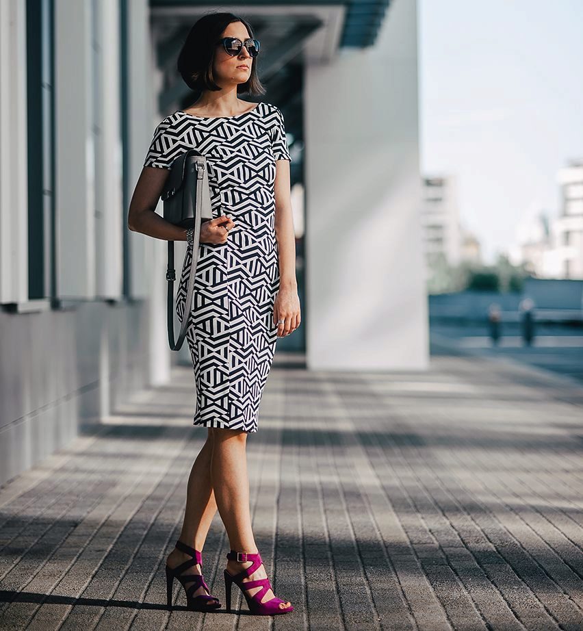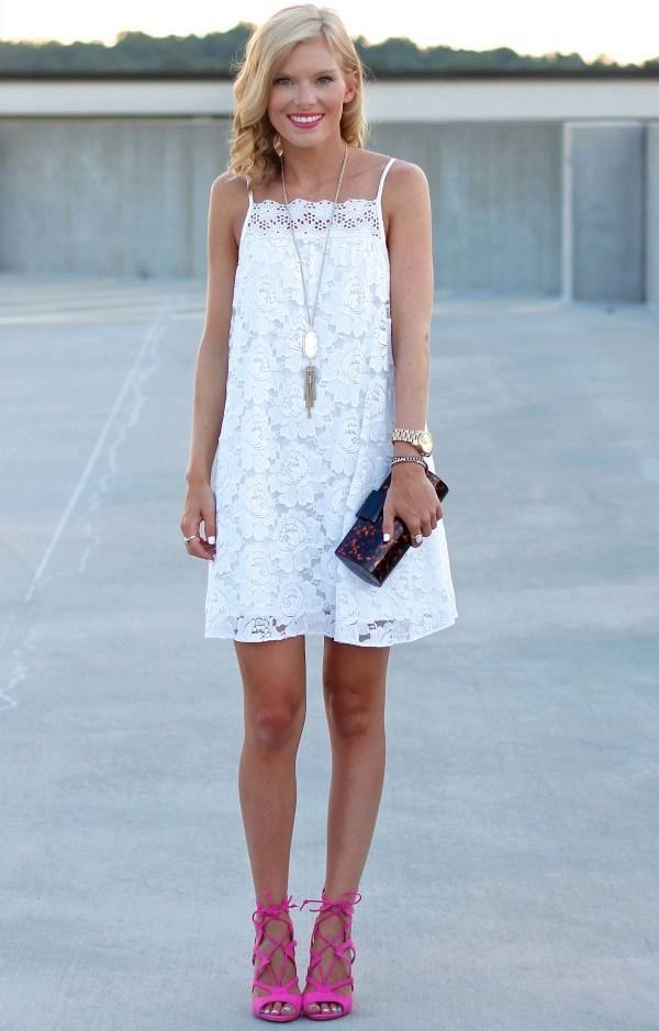 For example, a blue summer dress with slightly muted bright pink sandals will look spectacular.