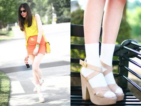 The massive platform is well combined with trousers, more miniature - with sundresses.