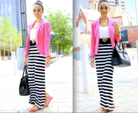 Always elegant looks a combination of pink with black, and in combination with white you get a gentle look.