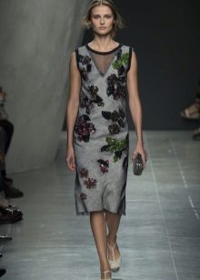In the trends of the new season, glamor is still the same - a bright and spectacular pair of sandals with a closed nose will make its owner irresistible and attract the attention of others. This can be a model of "golden" or "silver" leather, decorated with large rhinestones, stones or flowers.