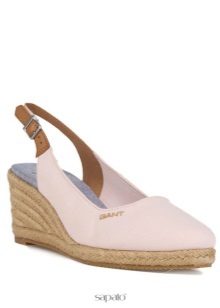 On vacation, it would be appropriate not so much glam as the ethnic style: natural materials, braided top, cork sole, original finish.