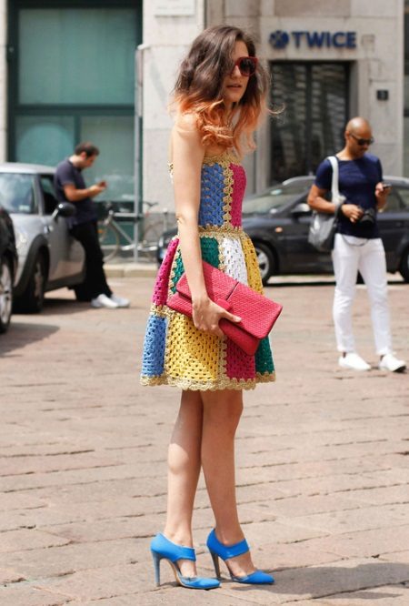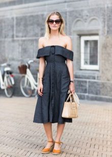Open-toe sandals go well with summer clothes: dresses, sundresses, skirts, shorts. Looks great combination of such models with lush feminine skirts and dresses in the floor. Narrowed, as an option shortened, trousers and jeans will also make them a good company. The only thing you should not wear sandals with a closed nose is long straight or flared trousers.