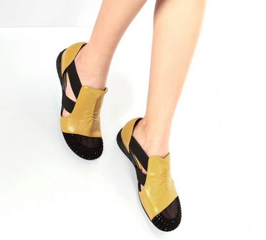 As for the prints, on sandals with a closed nose may be unobtrusive cell, small peas, flowers, abstraction, geometry and inscriptions.