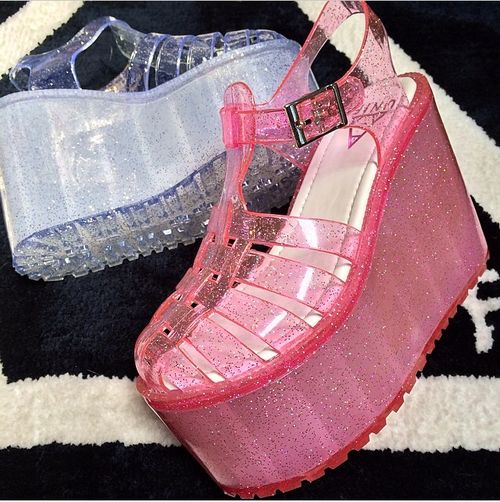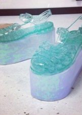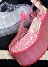Sandals may not be completely transparent. In a fashion - models with transparent inserts or separate transparent parts, for example, a heel, a platform, jumpers, straps, etc.