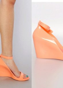 Silicone sandals are often made transparent. This is their main "highlight". Particularly interesting transparent sandals do not look in a colorless version, but in bright colors. Therefore, rich and juicy orange, purple, raspberry, pink, green and other shades of sandals will be especially relevant.