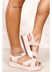 Richly decorated sandals look spectacular on the background of clothing, made in a more restrained style. Monochromatic sandals of white, black, blue, green, red, wine and other colors, as well as models in pastel colors, are perfect for everyday wear. They will harmoniously fit into the classic style of clothing, and in the romantic, and sports, and in the style of casual.