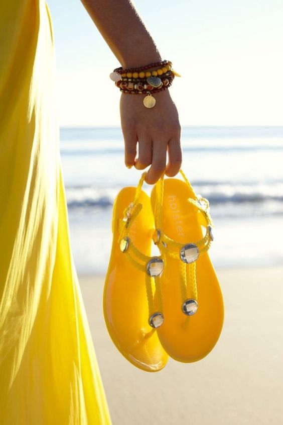 Jumper or strap sandals are great for a beach or a walk around the city. Especially if they have a flat sole or low heel. Beach models can be made in brighter and more creative colors. They can be in tune of a beach dress, sundress, skirt, pareo, bathing suit.