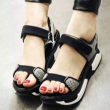 Sport sandals or sandals are made of soft wear-resistant material. Their soles are thick, grooved, with sides on the sides to prevent dust and dirt. As a rule, it is orthopedic.