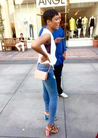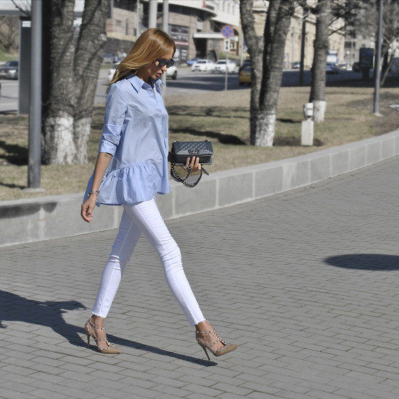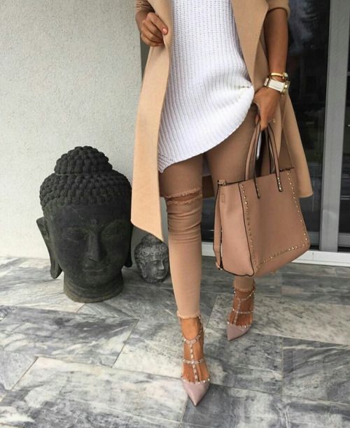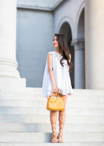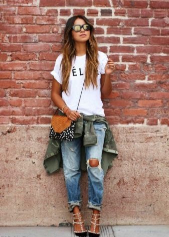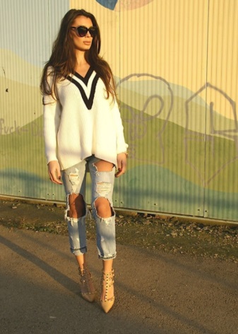 Valentino sandals are categorically not combined with tights or stockings, as well as long or wide trousers covering the ankle area. But classic cut shorts - this is exactly what you need. It can be leather goods or simply made of pastel color fabric. An ideal addition to this set would be a stylish baroque jacket. On a par with shorts, cropped jeans that are seductively fitting the figure look stylish with such shoes.