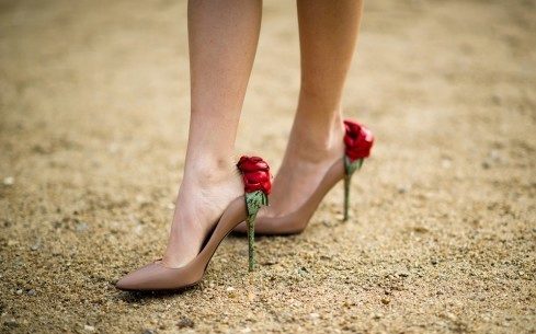 Studded shoes brilliantly emphasizes femininity through brutality.