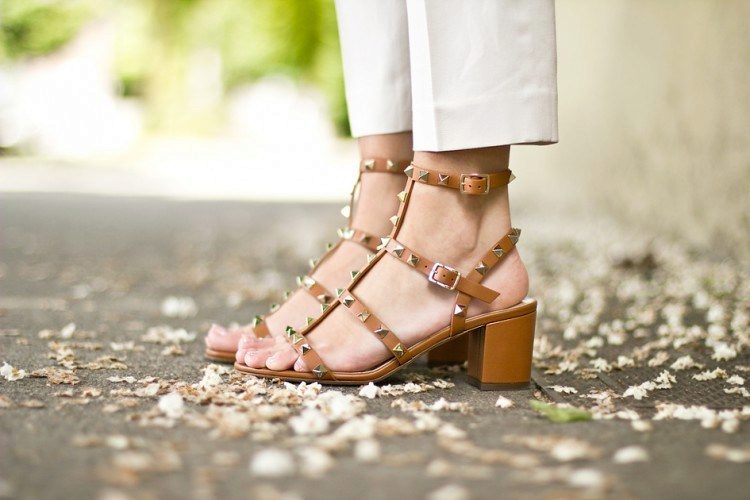 You need to competently combine these shoes with clothes so that the image does not turn out to be overloaded. Do not wear studded Italian sandals with bright prints or, on the contrary, with too simple plain clothes (like a strict classical suit).