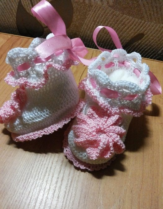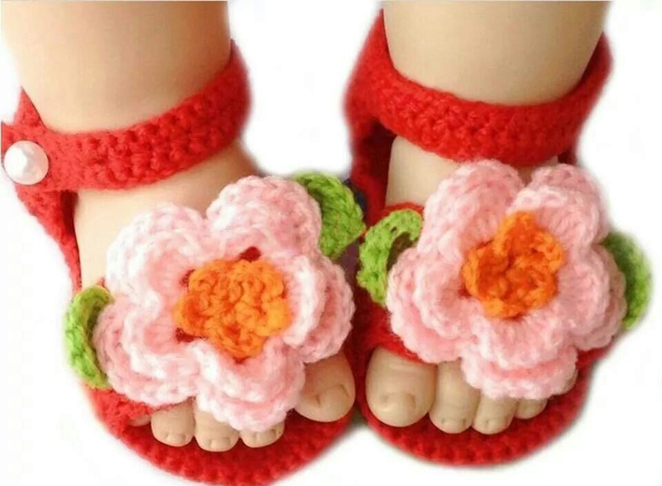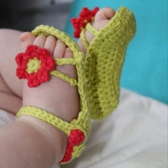 Knitted sandals are popular shoes for little fashionistas that always look cute and cozy. Knitted from high quality yarn, they are able to decorate any children's wardrobe.