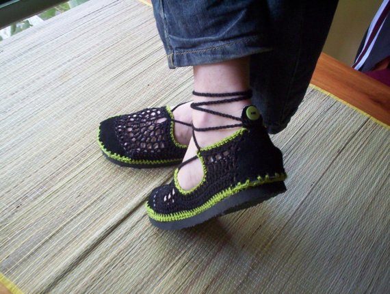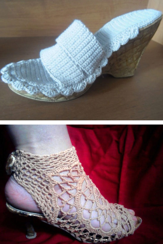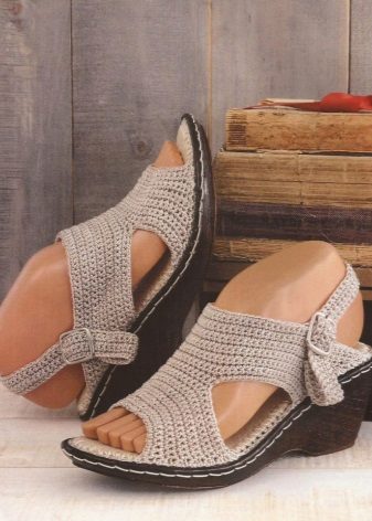 Such products, as a rule, are made by crocheting openwork knitting. Depending on the sole, these can be models on a low run, heel (including heels) or wedges.
