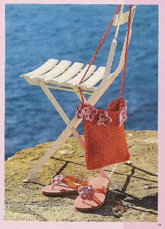 Casual ensemble will decorate sandals on a flat sole or wedge. Such an image will harmoniously complement the knitted bag.