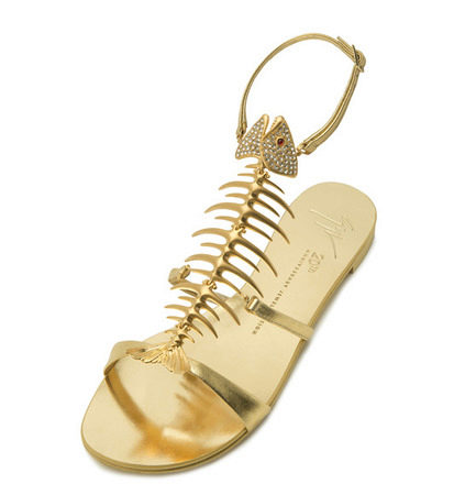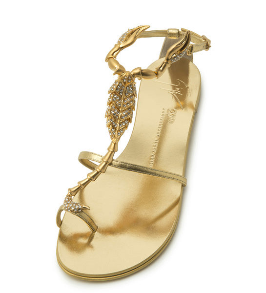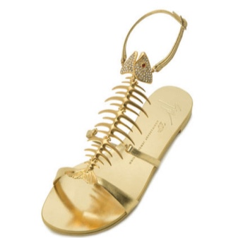 The brand celebrates its 20th anniversary with four limited collections, one of which included 6 pairs of sandals. The most unusual ones are made in gold and stylized as a fish skeleton.