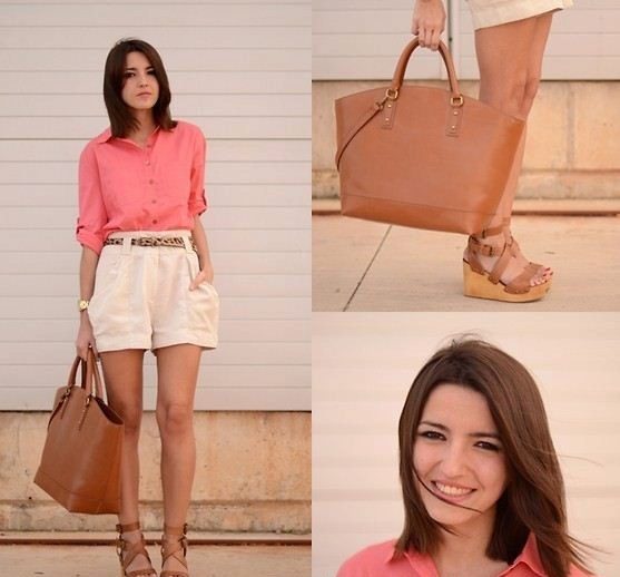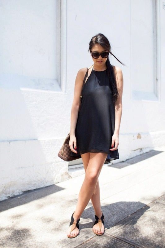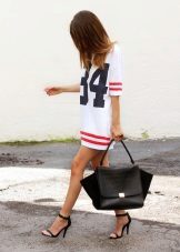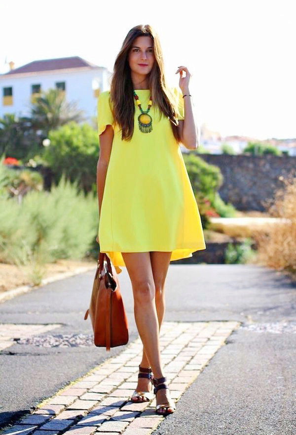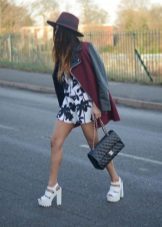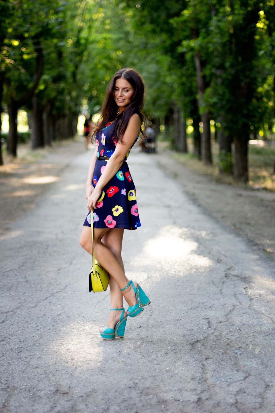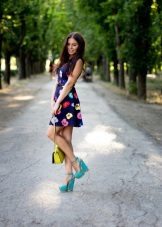 The dress. In the wardrobe of every beauty there is a short dress.But then for the perfect image choose two-tone sandals and tricolor dress, and dilute all with a handbag to match.