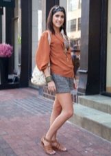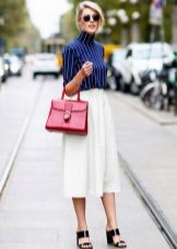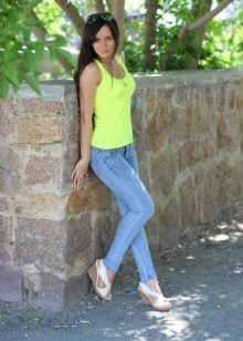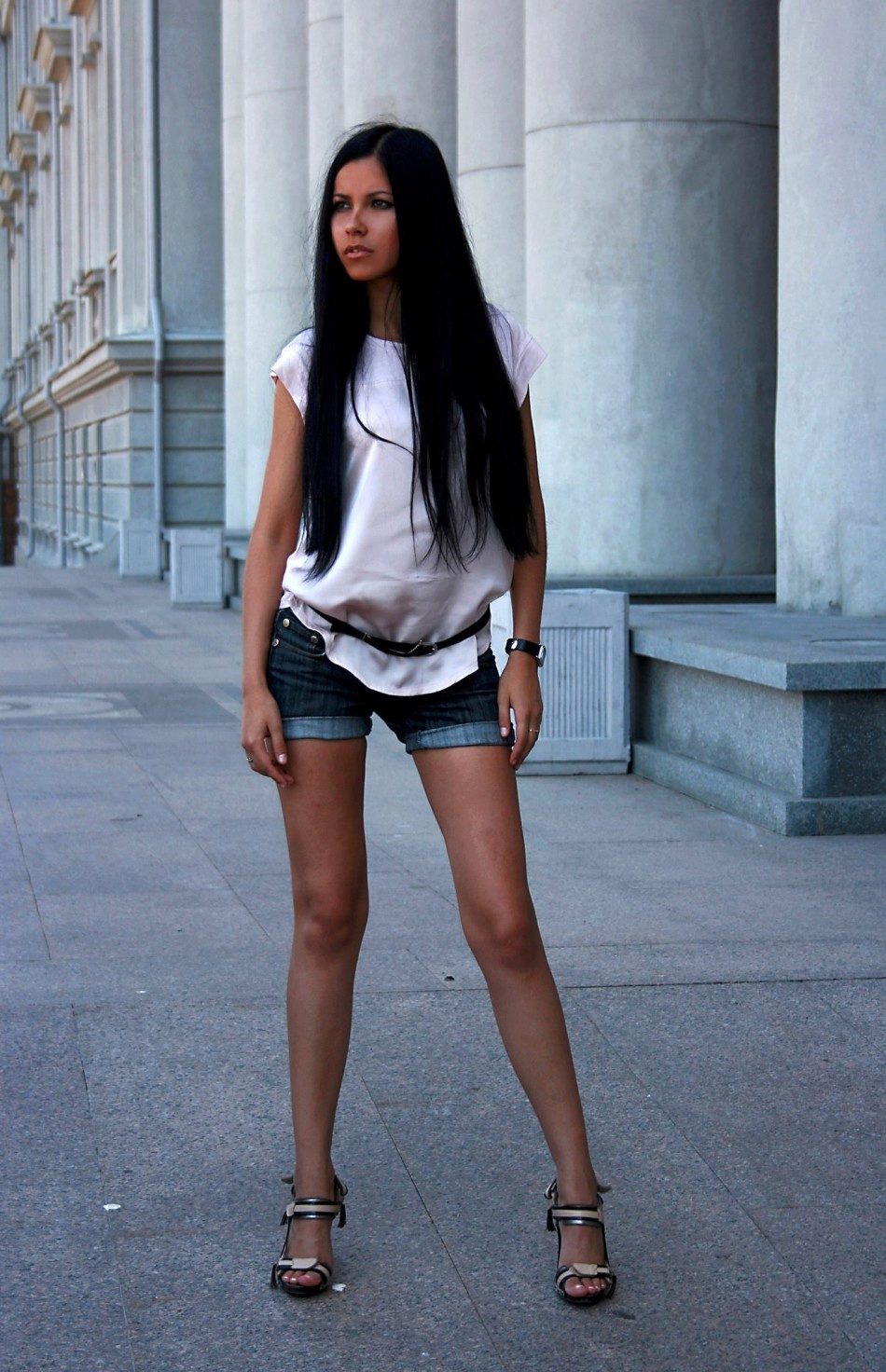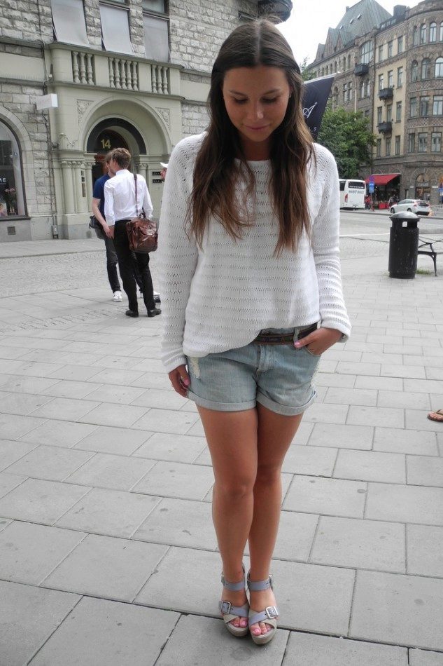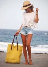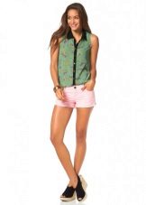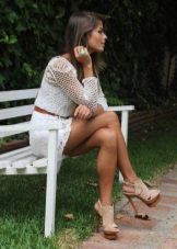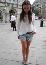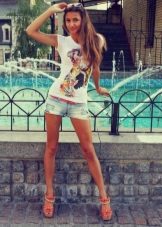 Shorts. To make the image perfect, you can choose sandals on the platform, and in order to not look heavy, you should wear a light summer jersey to the top.