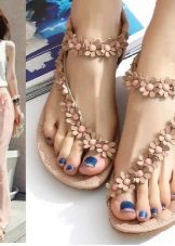 Beach option. A variety of such sandals is performed in a convenient form for the woman, they often go on the platform, but there are also heels. Decorating can be from simple to very complex, lush and elegant.The color scheme is performed in a variety of colors that are perfect for the beach season.