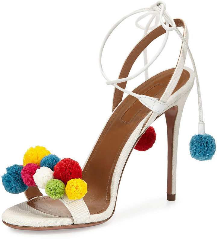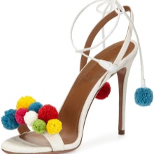 Sandals decorated with bows, pom-poms and fur are becoming fashionable decoration in this season. Very elegant decoration with ribbons. Sandals with this decor can be used for a walk around the city or at a youth party. The color scheme may be very different.