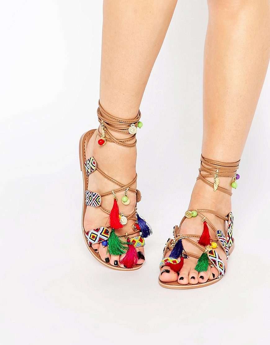 Braided sandals can be on the heel and low speed, but in both versions it is a beautiful view and a special underlining of the beauty of the legs, and, if necessary, can hide flaws. Such sandals are chosen by skilled women of fashion who like to emphasize their originality and individuality.