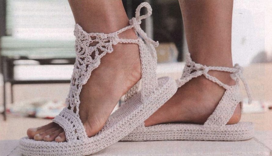 Knitted sandals. Such sandals can give a stylish or extravagant style, it all depends on what they are worn. They can be either on low speed or on heels and stilettos. They are decorated very rarely, since the lace knitting does not require decor, but sometimes the beads or large beads can emphasize the pattern.