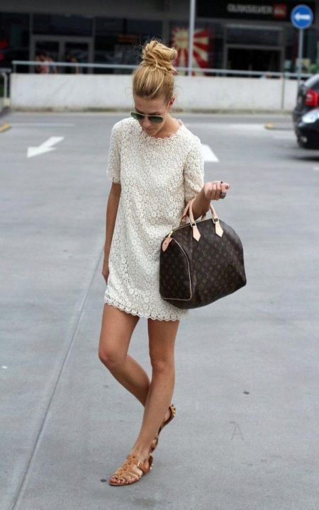 Dress will look perfect with any model of sandals, but you should choose them to match.