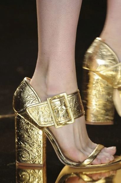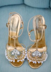 Such sandals are preferable to shoes, since the area of the “gold” used in them is much smaller. It is for this reason that the golden sandals do not look vulgar and defiant, but light and airy.