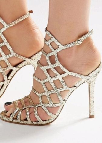 As for the species, golden sandals can be either with a fully closed upper part, or have various cutouts - on the toe, on the side or on the heel.