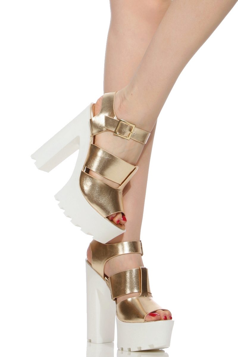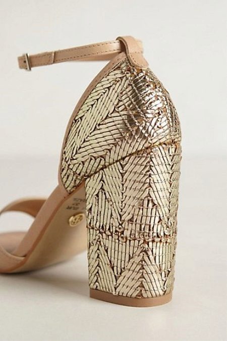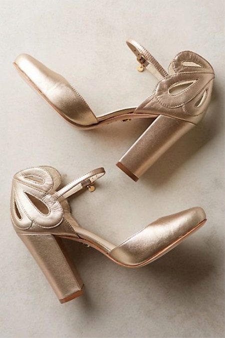 Sandals shade of bright gold will dominate the whole image, so they should be worn with clothes of not bright colors.