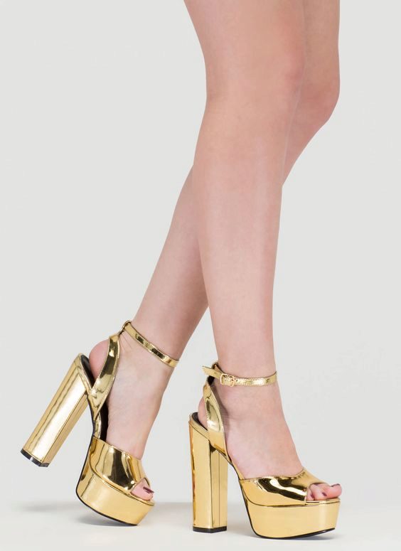 Since mostly a pair of gold sandals is purchased to create a solemn evening look, then you should pay attention to the high heel or stiletto.