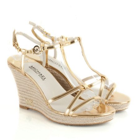 Golden wedge sandals can be considered a compromise between a stud and a flat sole.