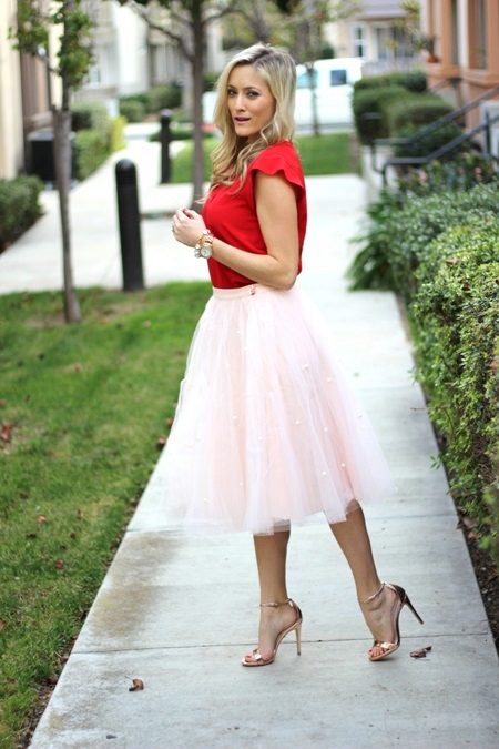Pink outfits in combination with gold sandals give the image girlish lightness and lightness.