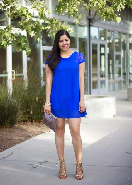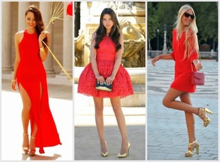 The most successful colors combined with golden sandals: yellow, orange, brown, beige, peach, pink, blue, blue and, of course, black.