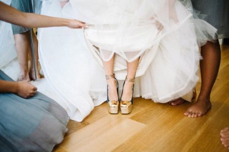 Not without reason, many brides choose not traditional snow-white shoes for their bridal party, but fashionable sandals in a shade of champagne or ayvor, often with a golden shade.