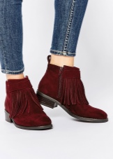 In winter models, suede is often combined with artificial or real fur, which is used as a decor. Shades of burgundy can also be different - rich color of red wine, cherry shades, brown-red tones with an admixture of red brick.