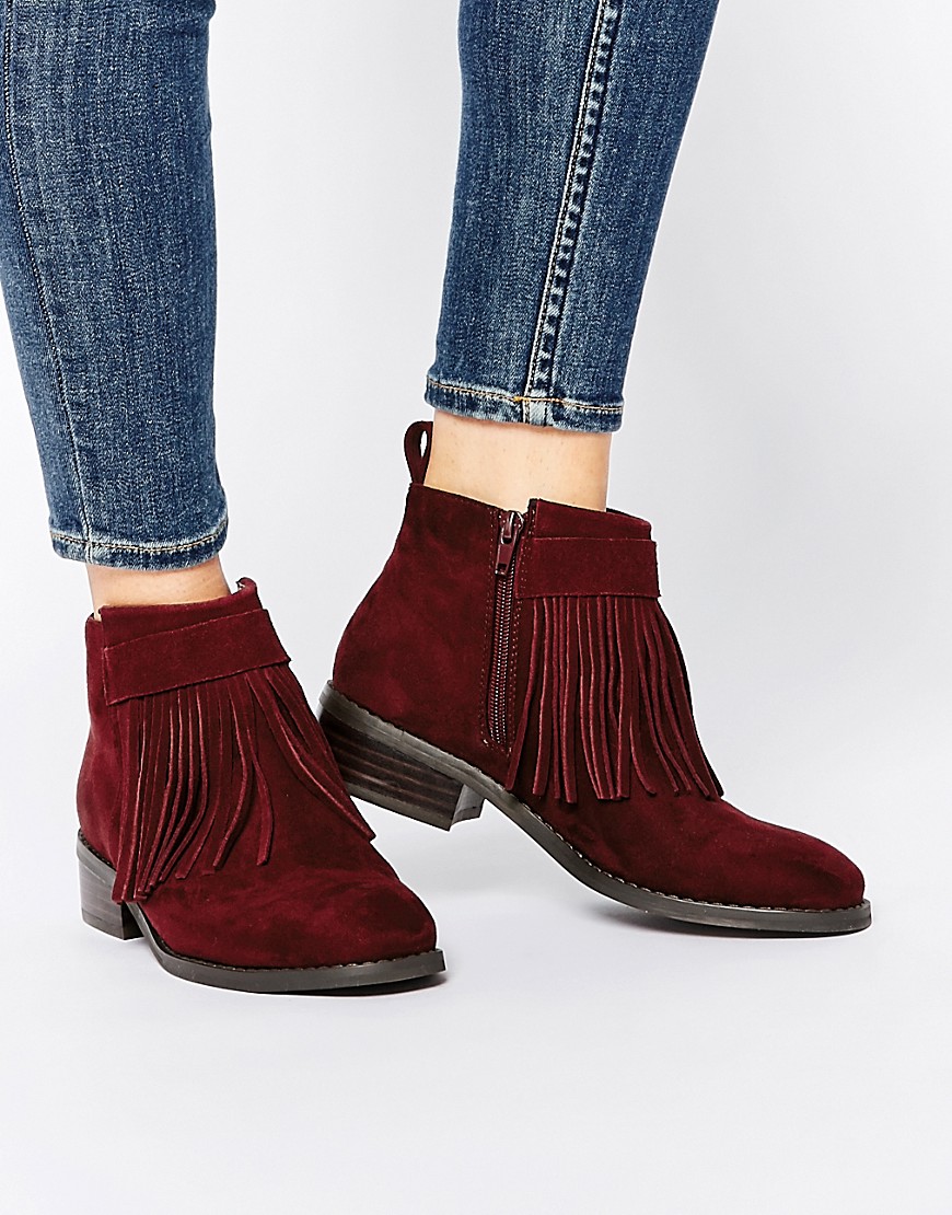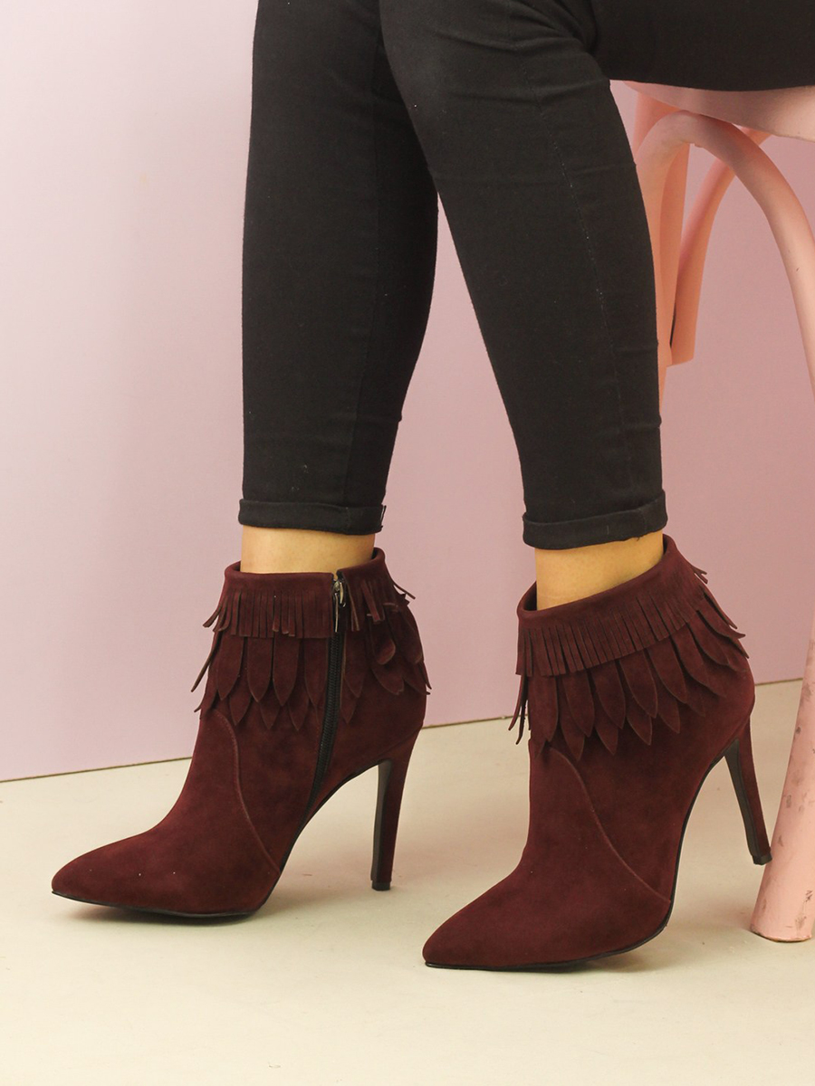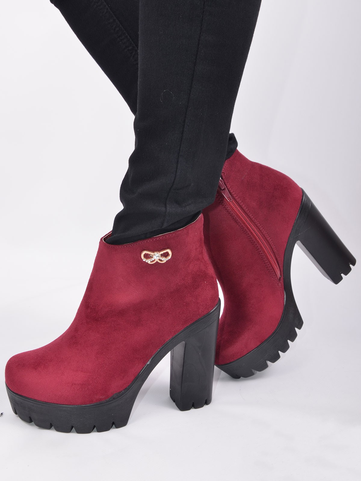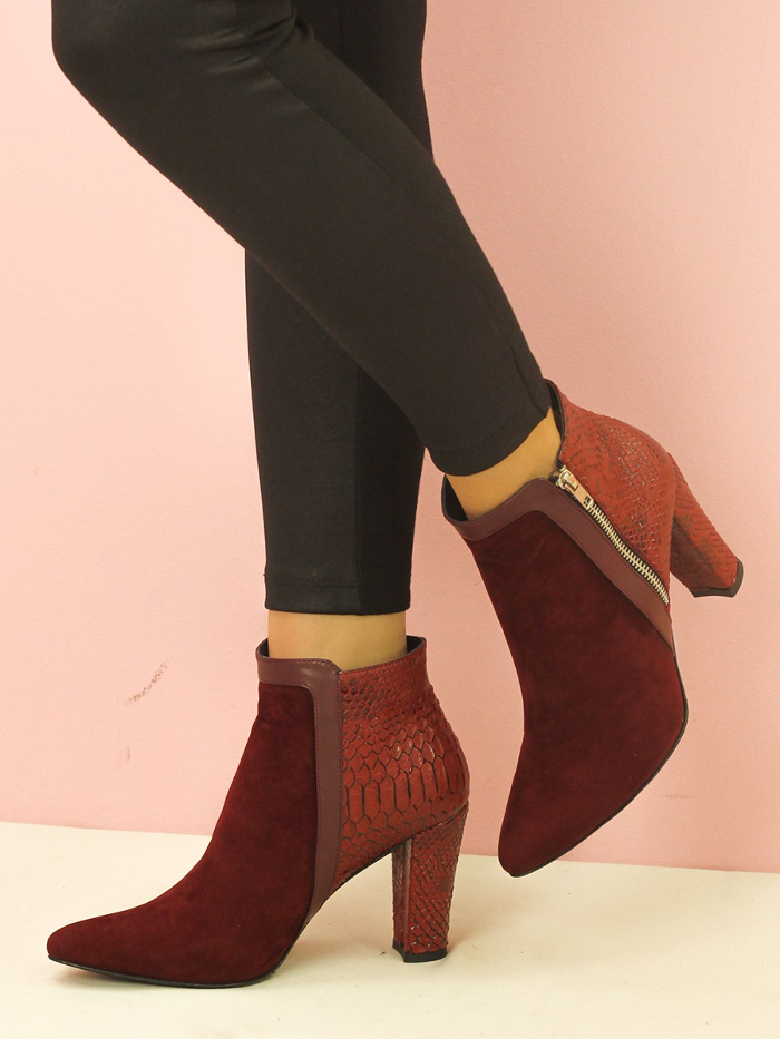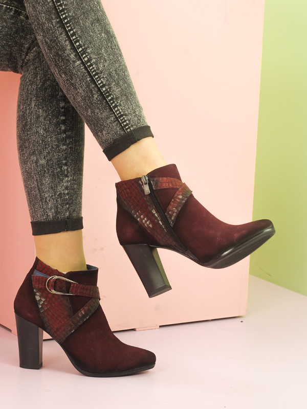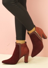 A variety of models and textures in which burgundy-colored shoe boots are presented in shop windows are amazing. The most stylish and bright color of burgundy looks in suede.