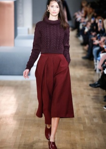 The discreet and elegant color of burgundy is able to add chic to the “warmed” wardrobe and perfectly combines with shades of gray and black. In addition, burgundy is convenient to combine with colors from the typical autumn palette: brick, muted orange, sand shades look great in tandem with burgundy color.