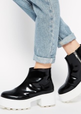 Typically, classic black ankle boots on the platform or wedges suit many girls. Especially like ankle boots will fall on girls of small stature. Thanks to the platform, a girl can add centimeters to her height without overloading her legs. Slim girls should be abandoned by such a model, since the high platform visually stretches the legs and makes them slimmer. When choosing this shoe legs will look even thinner.