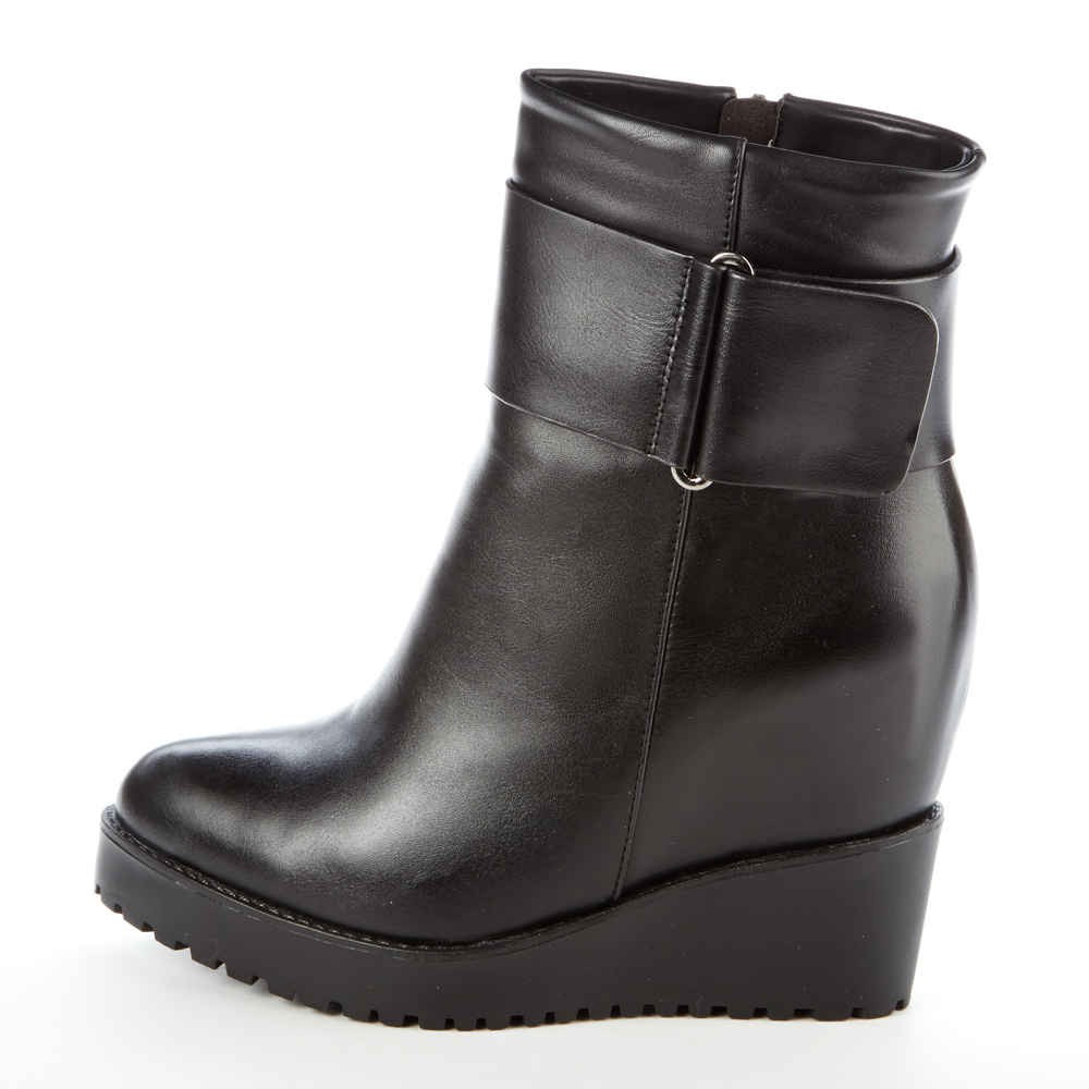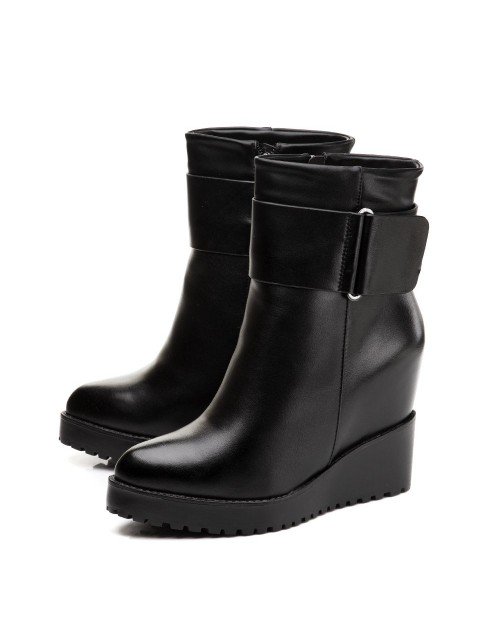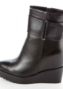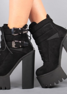 Choosing ankle boots in black on the platform for everyday wear, it is best to give preference to models of leather. Casual style and business dress code allow leather boots in black on the wedge and on the platform. Thanks to their practicality, they will be able to keep their original look longer. In addition, leather shoes unpretentious care.