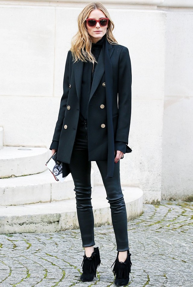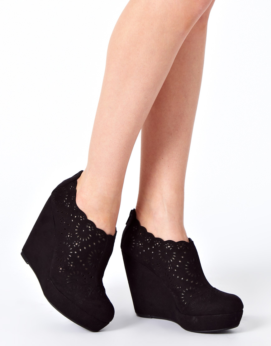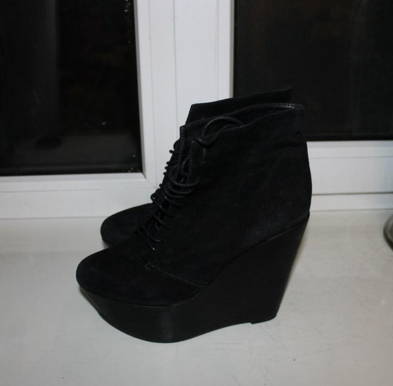 The best option for shoes on the platform will be tight jeans and pants. It is not necessary to combine black wedge ankle boots with classic-cut trousers that have arrows. It is better to give preference to black leather leggings, skinny jeans or denim leggings.