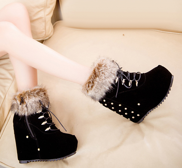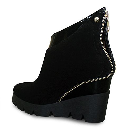 Suede wedge models look noble and luxurious. These boots can be worn at the event, they look expensive and perfectly complement the evening dress. Choosing the right business clothes, you can wear suede shoes to work.