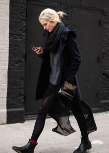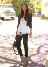 If you are planning to wear ankle boots, choose semi-fitted clothes. If we talk about pants, classic trousers are inappropriate here, models with arrows are especially contraindicated. Should prefer narrow jeans or leggings. As for the skirts, in this case the choice is wider. You can afford a skirt of any style, length and style. Especially good ankle boots look with a long skirt with a high slit.