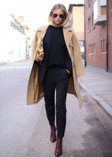 Let's talk about what is best to combine ankle boots. There are several rules, using which you will always be on top. First of all, remember that these shoes can not be worn with long and voluminous clothing. Such an ensemble looks ridiculous, shortens the legs and weights the image as a whole. Thus, tandem ankle boots and fur coats or long jackets should be avoided. Ankle boots look as good as possible with cloaks, coats or down jackets, half-thigh length.