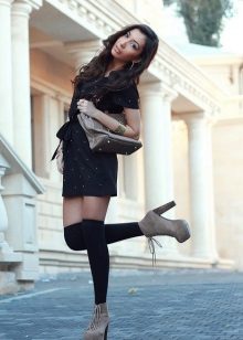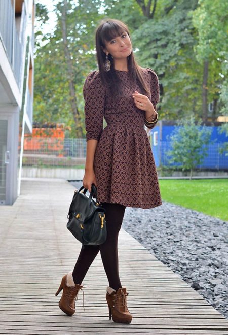 Ankle boots are a great choice for a romantic look. This is especially true for models with lacing. Here you can choose a dress with frills or a dress with puffy skirts, in which you will resemble a princess from a fairy tale. The optimal length for such a product is up to the knees.