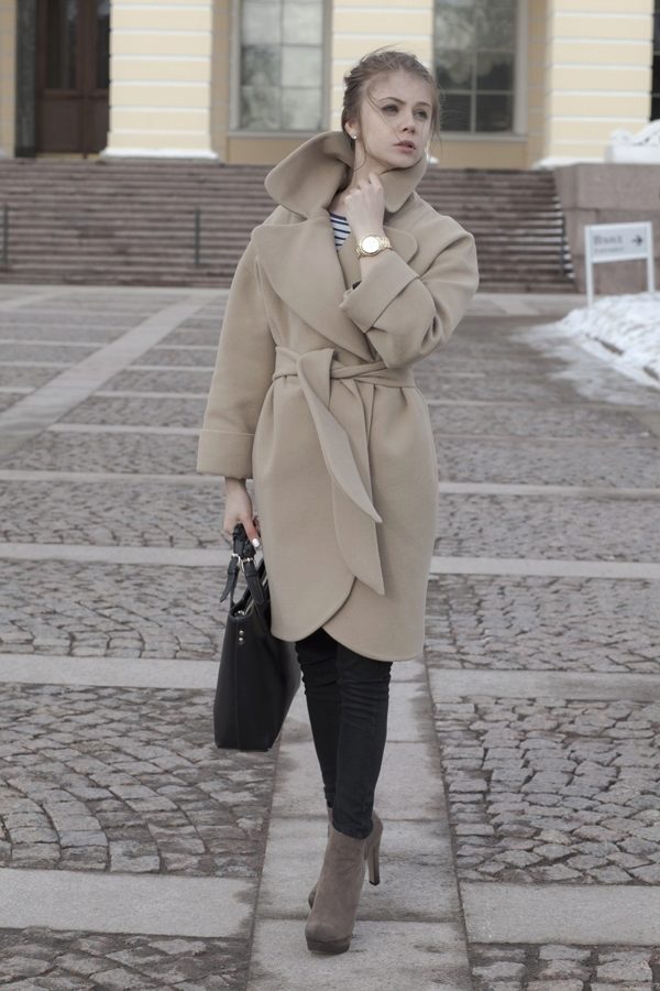 For the fall season, choose ankle boots complete with a cashmere coat or jacket and pleated skirt. This image is suitable for urban walks and looks very elegant.